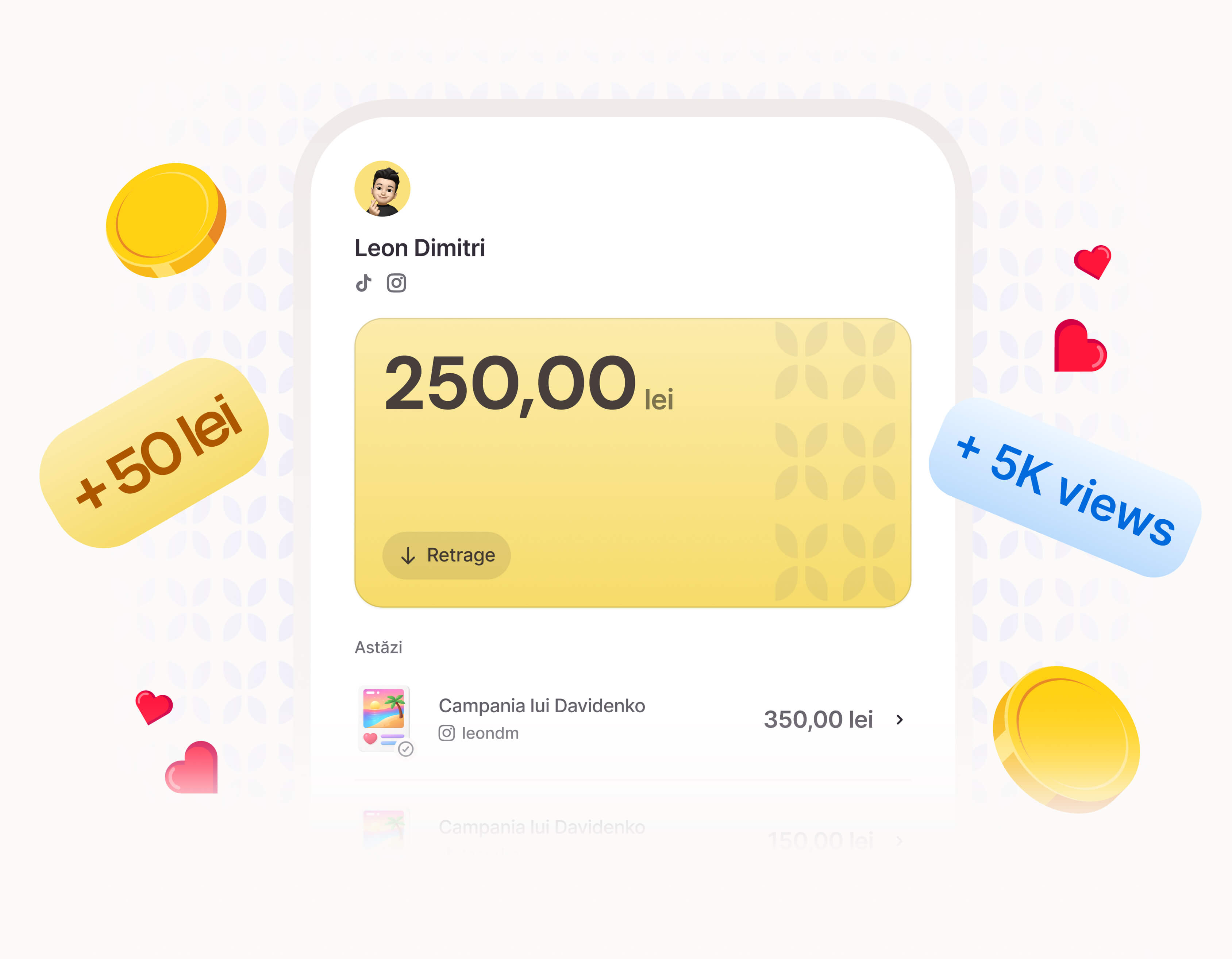 Ești plătit în funcție de vizualizări (pay-per-view). Plata începe de la minim 1.000 views. Câștigurile se actualizează pe măsură ce aduni vizualizări.